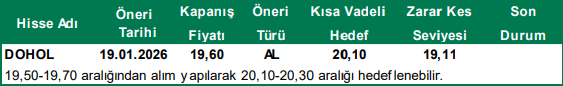 DOHOL : Takip ettiğimiz önemli destek bölgesi üzerinde kapanış yaptığını görmekteyiz. 19.20 seviyesi üzerinde yukarı yönlü fiyat hareketlerinin olası olabileceğini düşünmekteyiz. Olası geri çekilmelerde 19.42 seviyesini ara destek olarak takip etmekteyiz. Yukarıda 20.00 – 20.42 ve 20.88 seviyelerini sıralı hedefler olarak takip etmekteyiz.