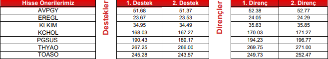 THYAO: Takip ettiğimiz önemli destek bölgesi üzerinde kapanış yaptığını görmekteyiz. 266.50 seviyesi üzerinde yukarı yönlü fiyat hareketlerinin olası olabileceğini düşünmekteyiz. Olası geri çekilmelerde 268.00 seviyesini ara destek olarak takip etmekteyiz. Yukarıda 273.25 ve 277.25 seviyelerini sıralı hedefler olarak takip etmekteyiz.