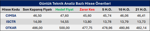 Bulls Yatırım Günlük Takip Listesi
