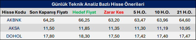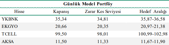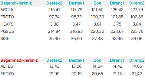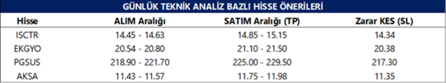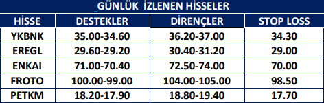 ISCTR : 14.25 – 14.35 bölgesinin önemli yatay destek bölgesi olduğunu düşünüyoruz. Bu bölge üzerinde sağlayabileceği kalıcılık ile fiyatın yukarı yönlü hareketlerine devam etmesi muhtemel olarak görünüyor. Yukarıda sırasıyla 14.75 – 15.19 ve 15.49 seviyelerini hedef olarak takip etmekteyiz.