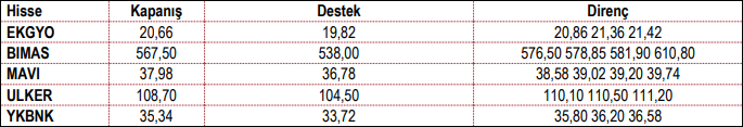 BIMAS, EKGYO, ENJSA, HALKB ve TCELL