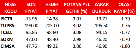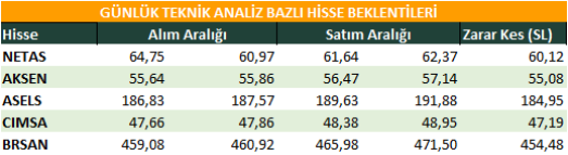 AKSEN, ANSGR, CIMSA, GARAN ve ISCTR