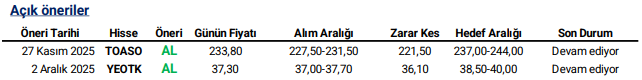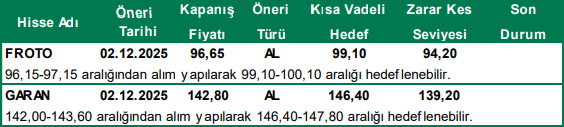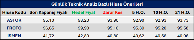 FROTO : Takip ettiğimiz önemli destek bölgesi üzerinde kapanış yaptığını görmekteyiz. 94.60 seviyesi üzerinde yukarı yönlü fiyat hareketlerinin olası olabileceğini düşünmekteyiz. Olası geri çekilmelerde 95.80 seviyesini ara destek olarak takip etmekteyiz. Yukarıda 98.70 ve 99.80 seviyelerini sıralı hedefler olarak takip etmekteyiz.