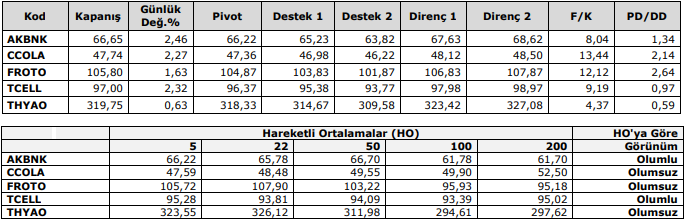 AKSA, ARCLK, BIMAS, ENKAI, KCHOL, OTKAR, TCELL: Güçlü teknik göstergelerin devamı