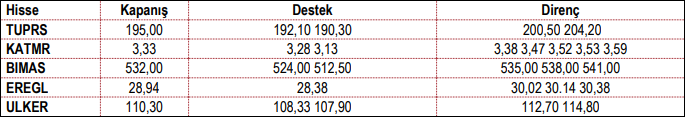 ASELS : 199.3 seviyesini ara destek olarak takip etmekteyiz. Bu bölge aşağısında 193.8 – 196.3 önemli yatay destek bölgesi bulunmakta. Yukarıda sırasıyla 207.7 – 213.2 ve 220.4 seviyelerini takip etmekteyiz.