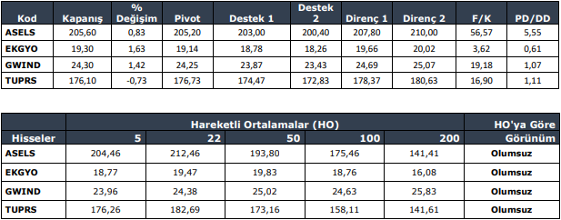 PGSUS : Kritik destek bölgesi üzerinde olduğunu görmekteyiz. 206 – 207 bölgesindeki istikarı ile yukarı yönlü tepki yükselişi yapabileceğini düşünmekteyiz. Bu noktada yukarıda sırasıyla 216 – 222 seviyelerini takip etmekteyiz.