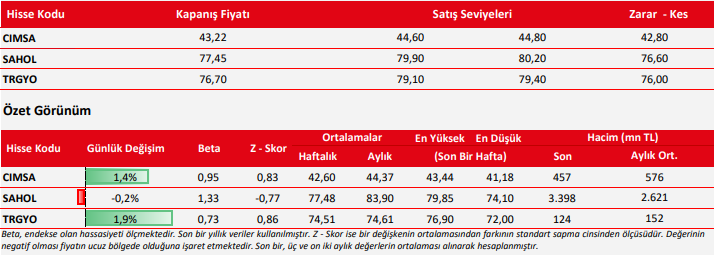 KCHOL : Fiyatın, önemli destek bölgesi olarak takip ettiğimiz 154.5 seviyesi üzerinde olduğunu görmekteyiz. Bu seviye üzerinde sağladığı istikrar ile birlikte yukarı yönlü fiyat hareketlerinin muhtemel olacağını düşünmekteyiz. Bu noktada yukarıda sırasıyla 159.6 – 163.1 – 167.4 seviyelerini takip etmekteyiz.