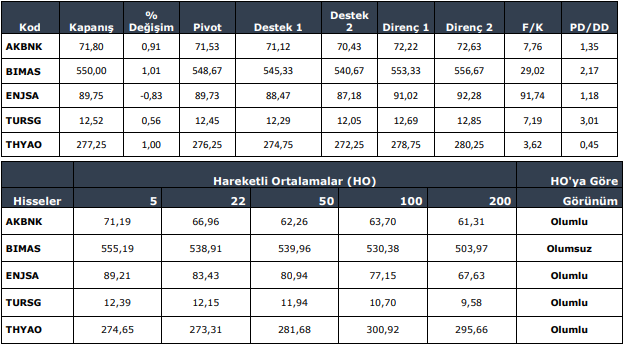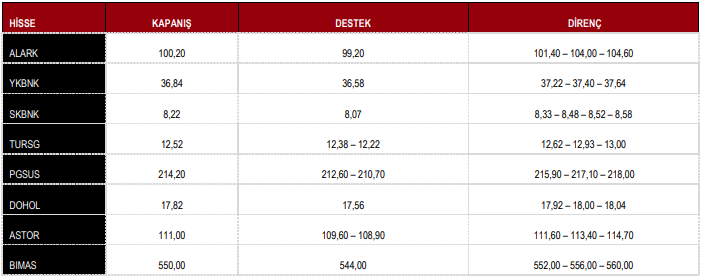 YKBNK : Takip ettiğimiz önemli destek bölgesi üzerinde kapanış yaptığını görmekteyiz. 36.30 seviyesi üzerinde yukarı yönlü fiyat hareketlerinin olası olabileceğini düşünmekteyiz. Olası geri çekilmelerde 36.56 seviyesini ara destek olarak takip etmekteyiz. Yukarıda 37.50 seviyesini hedef olarak takip etmekteyiz.