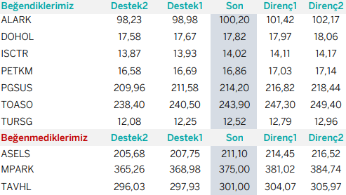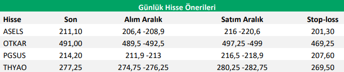 PGSUS : Takip ettiğimiz önemli destek bölgesi üzerinde kapanış yaptığını görmekteyiz. 210.70 seviyesi üzerinde yukarı yönlü fiyat hareketlerinin olası olabileceğini düşünmekteyiz. Olası geri çekilmelerde 212.60 seviyesini ara destek olarak takip etmekteyiz. Yukarıda 217.60 ve 220.40 seviyelerini sıralı hedefler olarak takip etmekteyiz.