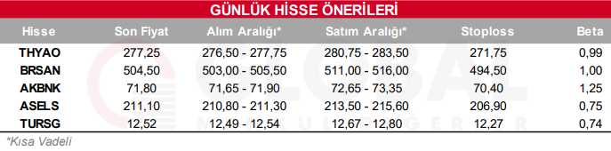 THYAO : Takip ettiğimiz önemli destek bölgesi üzerinde kapanış yaptığını görmekteyiz. 274.50 seviyesi üzerinde yukarı yönlü fiyat hareketlerinin olası olabileceğini düşünmekteyiz. Olası geri çekilmelerde 276.50 seviyesini ara destek olarak takip etmekteyiz. Yukarıda 282.00 ve 286.25 seviyelerini sıralı hedefler olarak takip etmekteyiz.