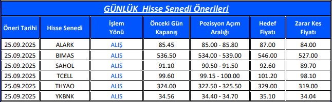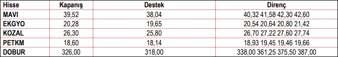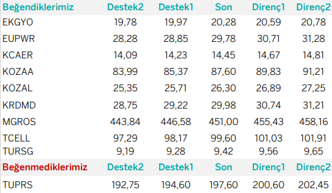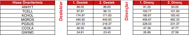 ALARK : 82.00 – 82.50 ana destek bölgesine yaptığı retestlerin sağlıklı olduğunu düşünüyoruz. Retest sonrasında 83.80 – 84.00 ara destek üzerinde yaptığı kapanışla birlikte yükselişlerin devam edebilme potansiyeline sahip olduğunu muhtemel senaryo olarak görüyoruz. Bu noktada 87.80 ve 90.00 seviyesini sıralı hedefler olarak takip etmekteyiz.
