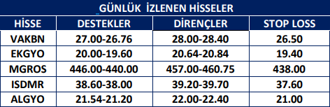 İntegral Yatırım’ın Bugün Hareketli Olmasını Beklediği Hisse Senetleri:
