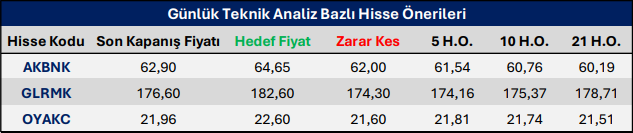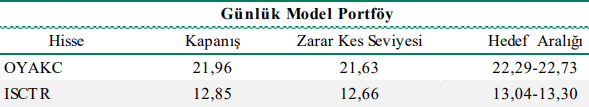 OYAKC : 21.46 yatay destek seviyesinin önemli olduğunu düşünmekteyiz. Bu bölge üzerinde yukarı yönlü fiyat hareketleri olası gözükmektedir. Yukarıda 22.44 – 23.00 seviyelerini sıralı hedefler olarak takip etmekteyiz.