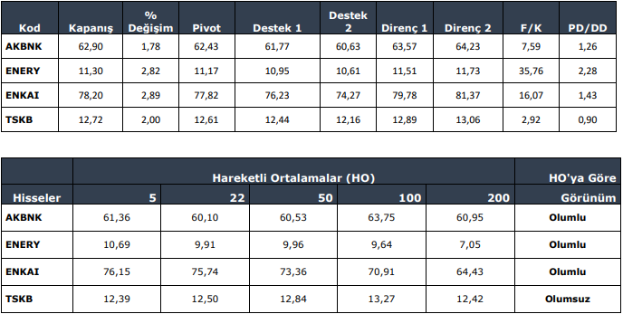AEFES, AGHOL, AKBNK, ENKAI ve FENER