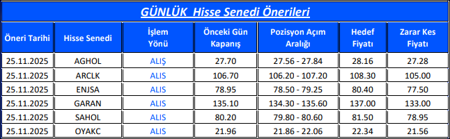ANSGR : 21.84 yatay destek seviyesinin önemli olduğunu düşünmekteyiz. Bu bölge üzerinde yukarı yönlü fiyat hareketleri olası gözükmektedir. Yukarıda 22.50 – 22.90 seviyelerini sıralı hedefler olarak takip etmekteyiz.