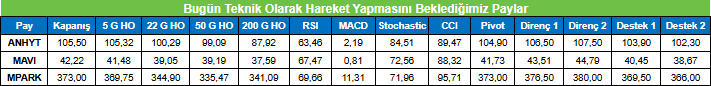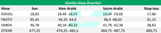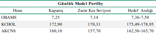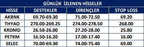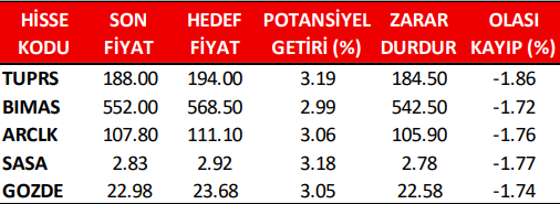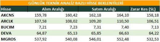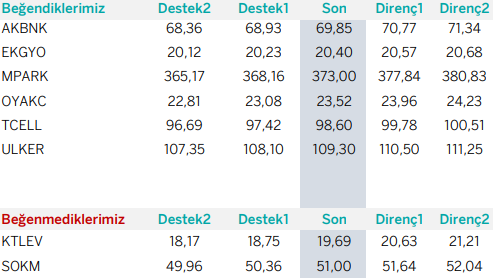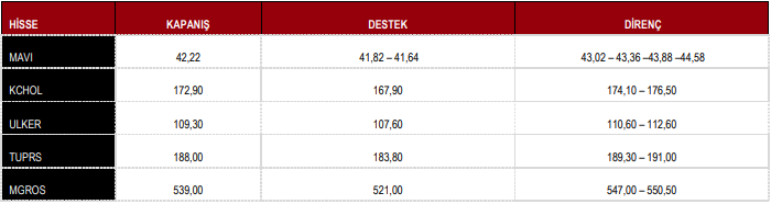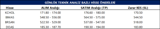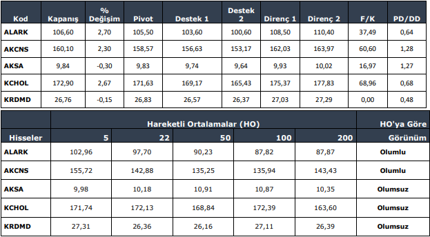 KCHOL : Takip ettiğimiz önemli destek bölgesi üzerinde kapanış yaptığını görmekteyiz. 170.00 seviyesi üzerinde yukarı yönlü fiyat hareketlerinin olası olabileceğini düşünmekteyiz. Olası geri çekilmelerde 171.70 seviyesini ara destek olarak takip etmekteyiz. Yukarıda 176.60 ve 179.30 seviyelerini sıralı hedefler olarak takip etmekteyiz.
