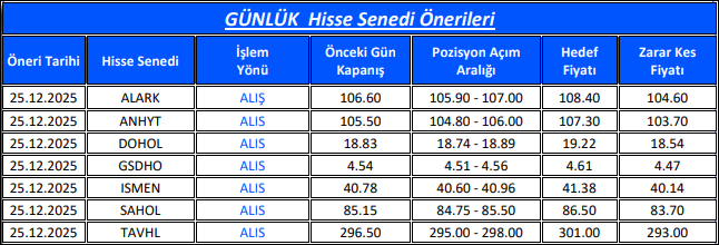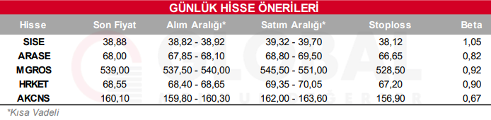 SAHOL : Takip ettiğimiz önemli destek bölgesi üzerinde kapanış yaptığını görmekteyiz. 83.85 seviyesi üzerinde yukarı yönlü fiyat hareketlerinin olası olabileceğini düşünmekteyiz. Olası geri çekilmelerde 84.50 seviyesini ara destek olarak takip etmekteyiz. Yukarıda 86.80 ve 88.10 seviyelerini sıralı hedefler olarak takip etmekteyiz.