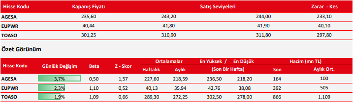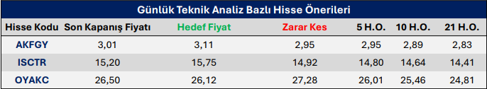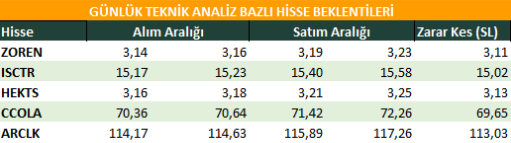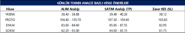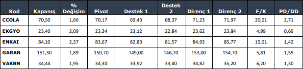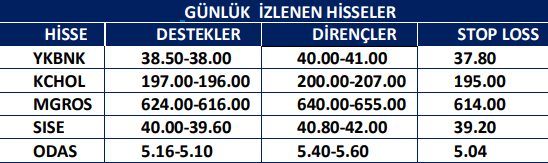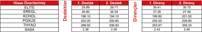 KCHOL: Takip ettiğimiz önemli destek bölgesi üzerinde kapanış yaptığını görmekteyiz. 194.50 seviyesi üzerinde yukarı yönlü fiyat hareketlerinin olası olabileceğini düşünmekteyiz. Olası geri çekilmelerde 196.10 seviyesini ara destek olarak takip etmekteyiz. Yukarıda 202.20 ve 206.00 seviyelerini sıralı hedefler olarak takip etmekteyiz.