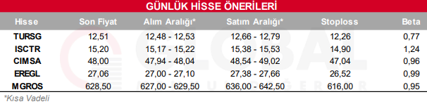 ARCLK, CCOLA, GLRMK, ISCTR ve KRDMD