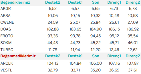 CIMSA : 44.64 yatay destek seviyesinin önemli olduğunu düşünmekteyiz. Bu seviye üzerinde yukarı yönlü fiyat hareketleri olası gözükmektedir. Yukarıda 46.64 – 47.92 seviyelerini sıralı hedefler olarak takip etmekteyiz.