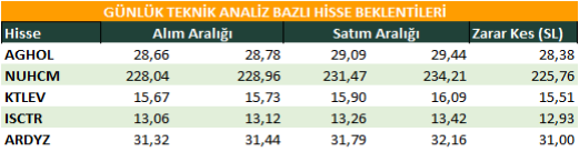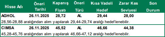 AEFES, AGHOL, AKBNK, CIMSA ve ENERY