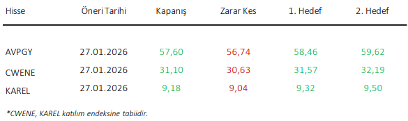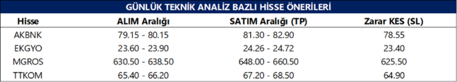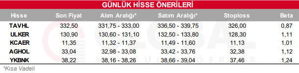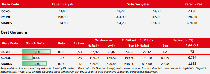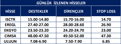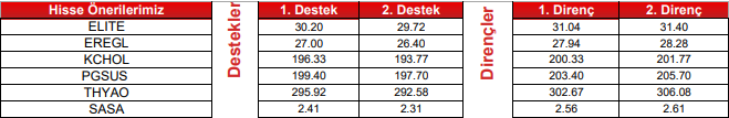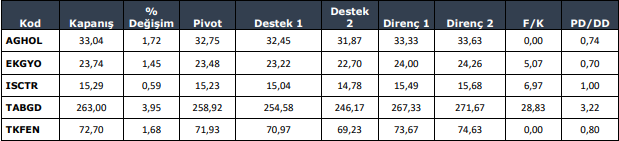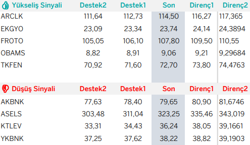 KCHOL: Takip ettiğimiz önemli destek bölgesi üzerinde kapanış yaptığını görmekteyiz. 196.00 seviyesi üzerinde yukarı yönlü fiyat hareketlerinin olası olabileceğini düşünmekteyiz. Olası geri çekilmelerde 198.00 seviyesini ara destek olarak takip etmekteyiz. Yukarıda 202.20 ve 206.00 seviyelerini sıralı hedefler olarak takip etmekteyiz.