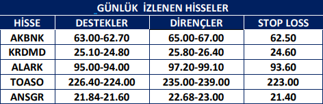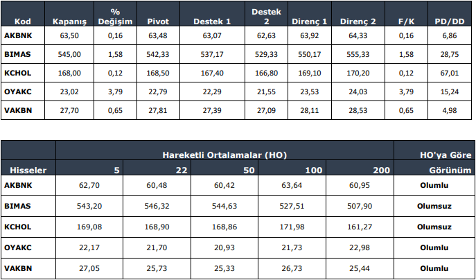 AKBNK, EKGYO, KTLEV, SAHOL : Yukarı yönde tepkinin sürme beklentisi