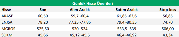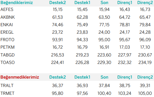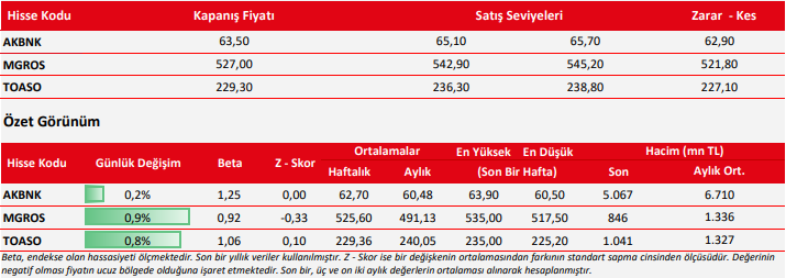 MGROS: Takip ettiğimiz önemli destek bölgesi üzerinde kapanış yaptığını görmekteyiz. 518 seviyesi üzerinde yukarı yönlü fiyat hareketlerinin olası olabileceğini düşünmekteyiz. Olası geri çekilmelerde 523 seviyesini ara destek olarak takip etmekteyiz. Yukarıda 539 – 541 bölgesini ve 545 seviyesini sıralı hedefler olarak takip etmekteyiz.