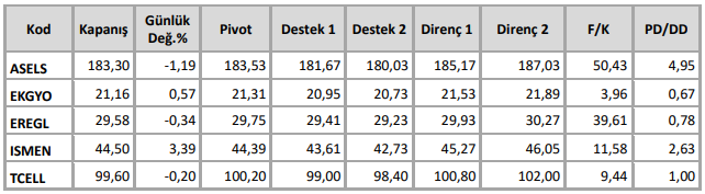 ISMEN, MAVI, DSTKF, EKGYO ve ENJSA