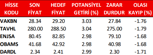AKBNK, EKGYO, ISCTR, KONTR ve TAVHL