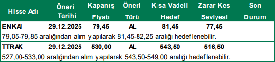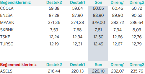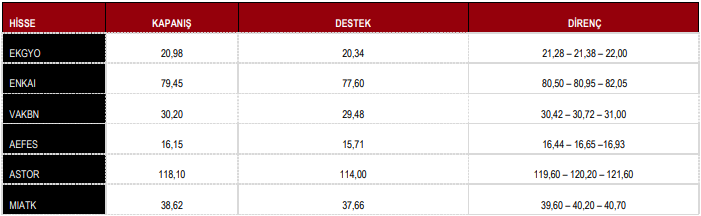 ENKAI : Takip ettiğimiz önemli destek bölgesi üzerinde kapanış yaptığını görmekteyiz. 78.45 seviyesi üzerinde yukarı yönlü fiyat hareketlerinin olası olabileceğini düşünmekteyiz. Olası geri çekilmelerde 79.00 seviyesini ara destek olarak takip etmekteyiz. Yukarıda 80.75 ve 81.65 seviyelerini sıralı hedefler olarak takip etmekteyiz.