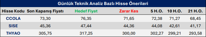 CCOLA : Takip ettiğimiz önemli destek bölgesi üzerinde kapanış yaptığını görmekteyiz. 71.00 seviyesi üzerinde yukarı yönlü fiyat hareketlerinin olası olabileceğini düşünmekteyiz. Olası geri çekilmelerde 72.40 seviyesini ara destek olarak takip etmekteyiz. Yukarıda 76.45 ve 78.80 seviyelerini sıralı hedefler olarak takip etmekteyiz.