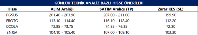 PGSUS : Takip ettiğimiz önemli destek bölgesi üzerinde kapanış yaptığını görmekteyiz. 198.70 seviyesi üzerinde yukarı yönlü fiyat hareketlerinin olası olabileceğini düşünmekteyiz. Olası geri çekilmelerde 201.50 seviyesini ara destek olarak takip etmekteyiz. Yukarıda 207.90 ve 211.90 seviyelerini sıralı hedefler olarak takip etmekteyiz.