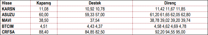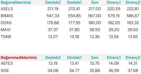MAVI : 37.28 yatay destek seviyesinden aldığı tepkiler sonrasında yaptığı yükseliş ve geri çekilme hareketlerinin sağlıklı olduğunu düşünüyoruz. Fiyatın dip seviyelerde yaptığı geri çekilmeler ile birlikte RSI’da saatlik ve 4 saatlik zaman dilimlerinde pozitif uyumsuzluk olduğunu görüyoruz. 37.90 – 38.00 ara destek bölgesi üzerinde fiyat hareketinin yukarı yönlü devam edebileceğini öngörüyoruz. Yukarıda 39.50 – 39.60 bölgesi ve 40.50 seviyesini takip etmekteyiz.