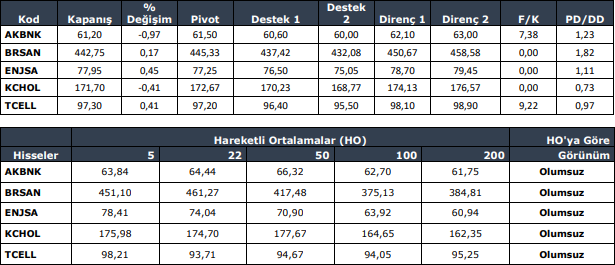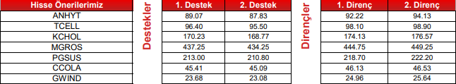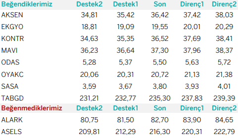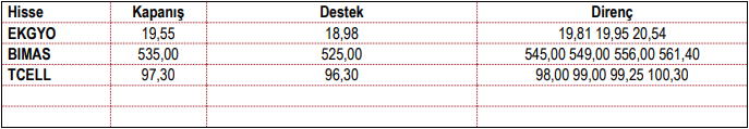 OYAKC : 20.50 – 20.60 yatay destek bölgesinin önemli olduğunu düşünüyoruz. Bu bölge üzerinde yukarı yönlü fiyat hareketleri olası gözüküyor. Yukarıda 21.10 seviyesi ve 21.50 -21.70 bölgesini takip etmekteyiz.