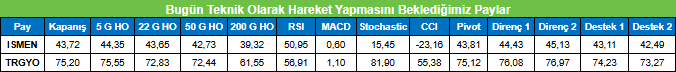 BALSU : 23.58 seviyesini ara destek, 23.10 – 23.20 bölgesini ise kısa vadeli önemli ana destek olarak takip etmekteyiz. Bu destek bölgeleri üzerinde yukarı yönlü fiyat hareketinin devam edebileceğini düşünüyoruz. Yukarıda 24.78 – 25.34 ve 26.20’yi sıralı hedefler olarak takip etmekteyiz.