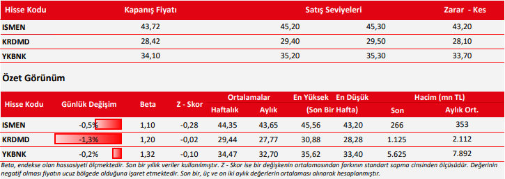 KRDMD : 28.24 seviyesi ve 28.00 seviyesinin önemli destek seviyeleri olduğunu düşünüyoruz. Yukarıda 29.20 – 29.30 seviyesini takip etmekteyiz.