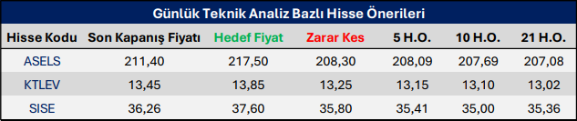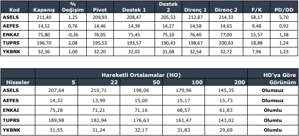 ASELS : 207.10 – 207.70 yatay destek bölgesi üzerinde fiyatın yukarı yönlü hareketlerine devam edebileceğini düşünmekteyiz. Fiyatın geçmişte bu bölgede sağladığı kalıcılık ve istikrardan dolayı kritik destek bölgesi olduğunu düşünmekteyiz. Yukarıda sırasıyla 215.40 – 220.40 seviyelerini hedef olarak takip etmekteyiz.