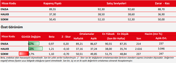 BRSAN, KTLEV, DSTKF, ENJSA ve GARAN