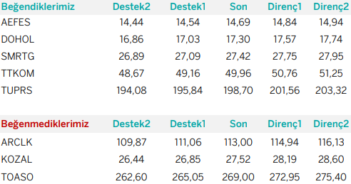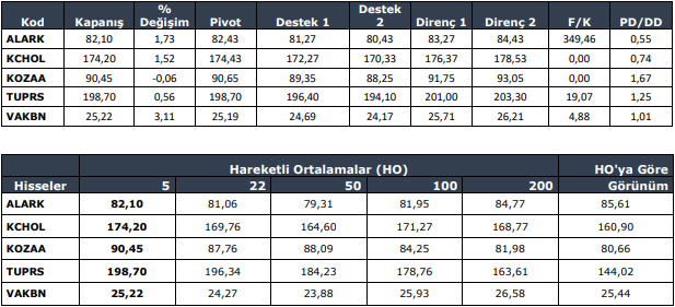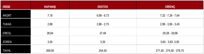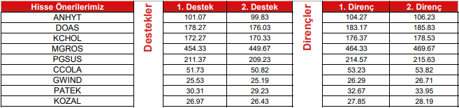CCOLA : Fiyatın önemli ara destek seviyesi üzerinde olduğunu görmekteyiz. Ara destek olarak 51.85 seviyesini takip etmekteyiz. Bu seviye üzerinde sağlayabileceği istikrar ile birlikte yukarı yönlü fiyat hareketlerinin olabileceğini düşünmekteyiz. Yukarıda 54.00 – 55.35 seviyelerini sıralı hedefler olarak takip etmekteyiz.