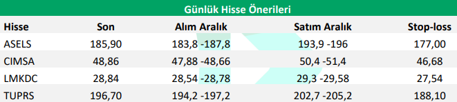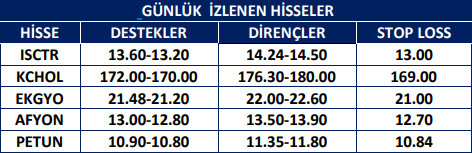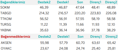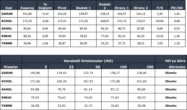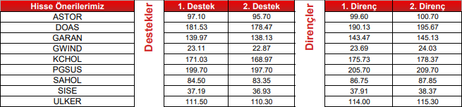 KCHOL : 170.40 seviyesi üzerinde yukarı yönlü fiyat hareketlerinin olası olabileceğini düşünmekteyiz. Olası geri çekilmelerde 172.2 seviyesini ara destek olarak takip etmekteyiz. Yukarıda 176.0 ve 178.7 seviyelerini sıralı hedefler olarak takip etmekteyiz.
