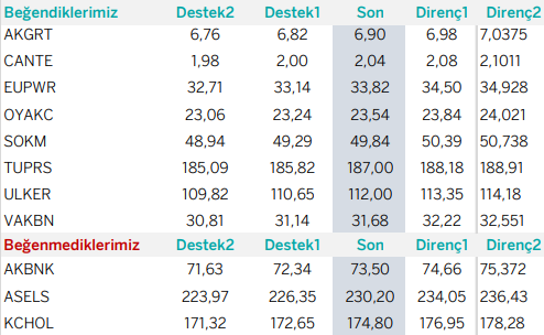 OYAKC : Takip ettiğimiz önemli destek bölgesi üzerinde kapanış yaptığını görmekteyiz. 23.16 seviyesi üzerinde yukarı yönlü fiyat hareketlerinin olası olabileceğini düşünmekteyiz. Olası geri çekilmelerde 23.38 seviyesini ara destek olarak takip etmekteyiz. Yukarıda 24.08 ve 24.56 seviyelerini sıralı hedefler olarak takip etmekteyiz.