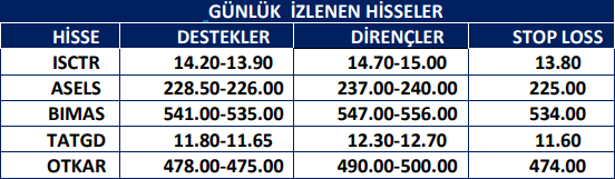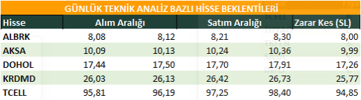 TTKOM, TCELL, SAHOL, KCHOL, AKSA, HALKB, THYAO, BRSAN: Teknik tepkisine devam edebilir.