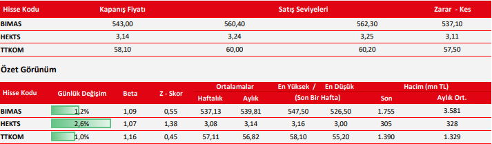 TTKOM : Takip ettiğimiz önemli destek bölgesi üzerinde kapanış yaptığını görmekteyiz. 57.25 seviyesi üzerinde yukarı yönlü fiyat hareketlerinin olası olabileceğini düşünmekteyiz. Olası geri çekilmelerde 57.70 seviyesini ara destek olarak takip etmekteyiz. Yukarıda 59.45 ve 60.45 seviyelerini sıralı hedefler olarak takip etmekteyiz.