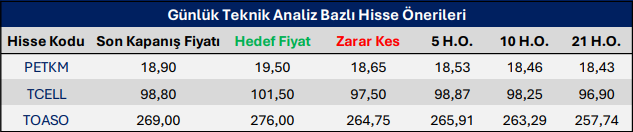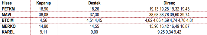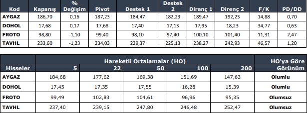 DOHOL, GRTHO, PETKM, TOASO ve CWENE