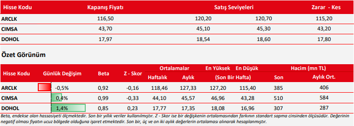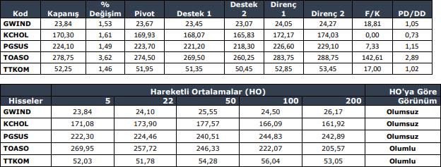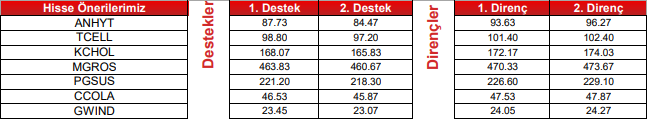 CCOLA : Fiyatın önemli destek bölgesi ve ara destek seviyesi üzerinde olduğunu görüyoruz. Ara destek olarak 46.94 ve önemli destek bölgesi olarak 46.50 – 46.60 bölgesini takip etmekteyiz. Bu bölgeler üzerinde sağlayabileceği istikrar ile birlikte yukarı yönlü hareketlerin olabileceğini düşünüyoruz. Yukarıda 47.80 – 48.50 seviyeleri ve 49.10 – 49.20 bölgesini sıralı hedefler olarak takip etmekteyiz.