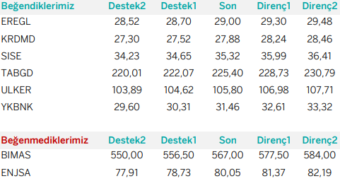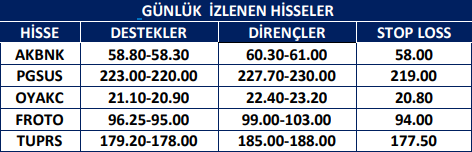 AKBNK : Fiyat önemli destek bölgesi olarak gördüğümüz 57.80 – 58.20’den tepki aldı. Bu bölge üzerinde sağlayabileceği kalıcılık ile birlikte yukarı yönlü hareketlerin muhtemel olacağını düşünüyoruz. Bu noktada 60.00 seviyesi ve 60.80 – 61.30 seviyesini takip etmekteyiz.