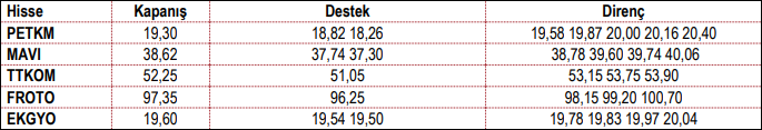PETKM, TCELL, ANHYT, BIMAS, GRTHO, TOASO, AKSA: Güçlü teknik göstergelerin devamı