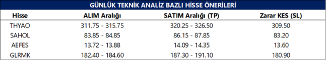 THYAO : Fiyatın önemli destek bölgesi ve ara destek seviyesi üzerinde olduğunu görüyoruz. Bu bölgeler üzerinde sağlayabileceği istikrar ile birlikte yukarı yönlü hareketlerin olabileceğini düşünüyoruz. Yukarıda 318.50 – 324.50 – 332.50 sıralı hedeflerini takip etmekteyiz.