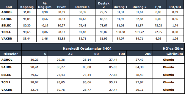 AEFES: Takip ettiğimiz önemli destek bölgesi üzerinde kapanış yaptığını görmekteyiz. 16.32 seviyesi üzerinde yukarı yönlü fiyat hareketlerinin olası olabileceğini düşünmekteyiz. Olası geri çekilmelerde 16.48 seviyesini ara destek olarak takip etmekteyiz. Yukarıda 16.91 ve 17.23 seviyelerini sıralı hedefler olarak takip etmekteyiz.